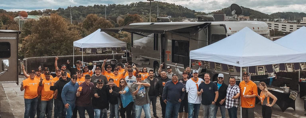 RV and tented tailgate setups with full branding